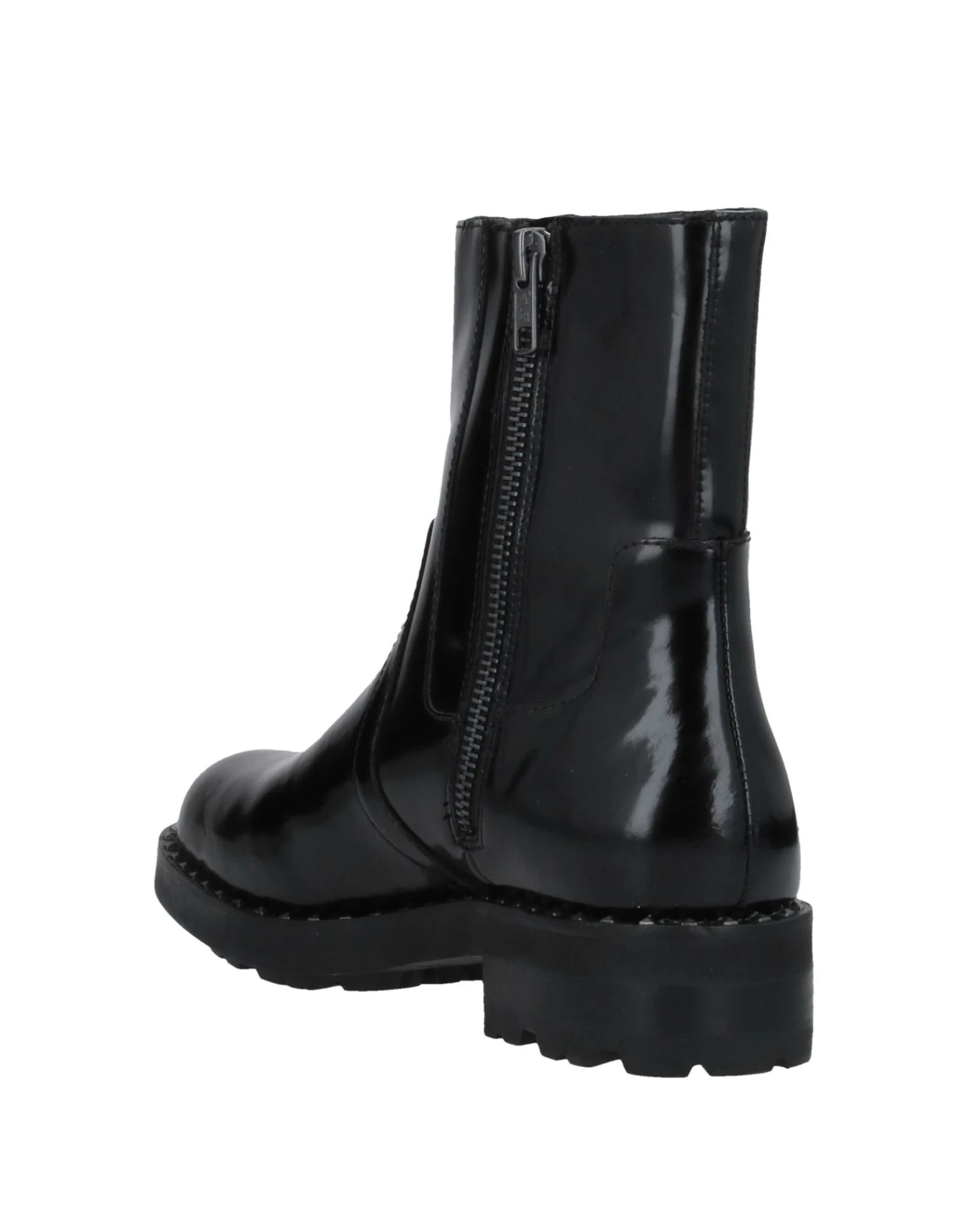 leather, studs, solid color, zipper closure, round toeline, square heel, leather lining, lug sole, contains non-textile parts of animal origin
