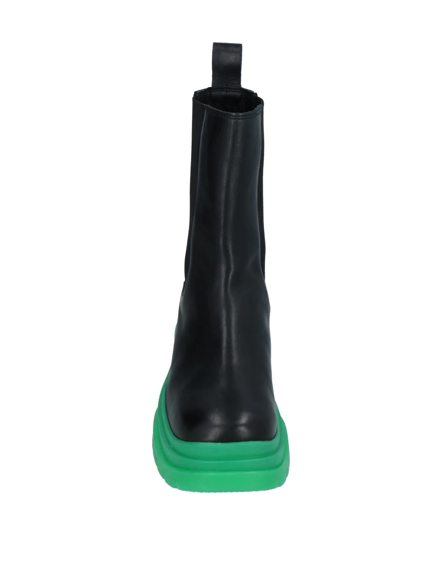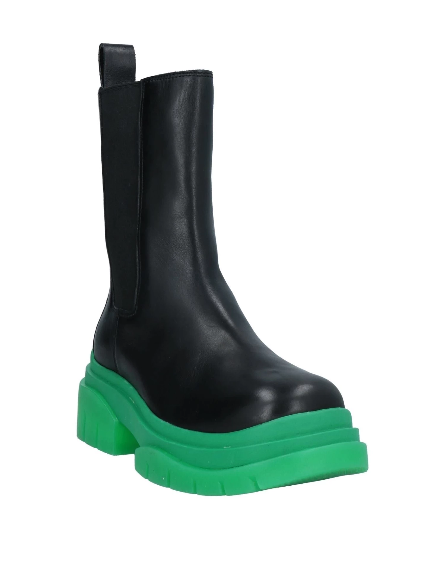 leather, no appliqués, solid color, leather backing, elasticized gores, round toeline, square heel, rubber heel, rubber cleated sole, contains non-textile parts of animal origin