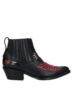 embroidered detailing, solid color, elasticized gores, narrow toeline, cuban heel, leather lining, rubber sole, contains non-textile parts of animal origin