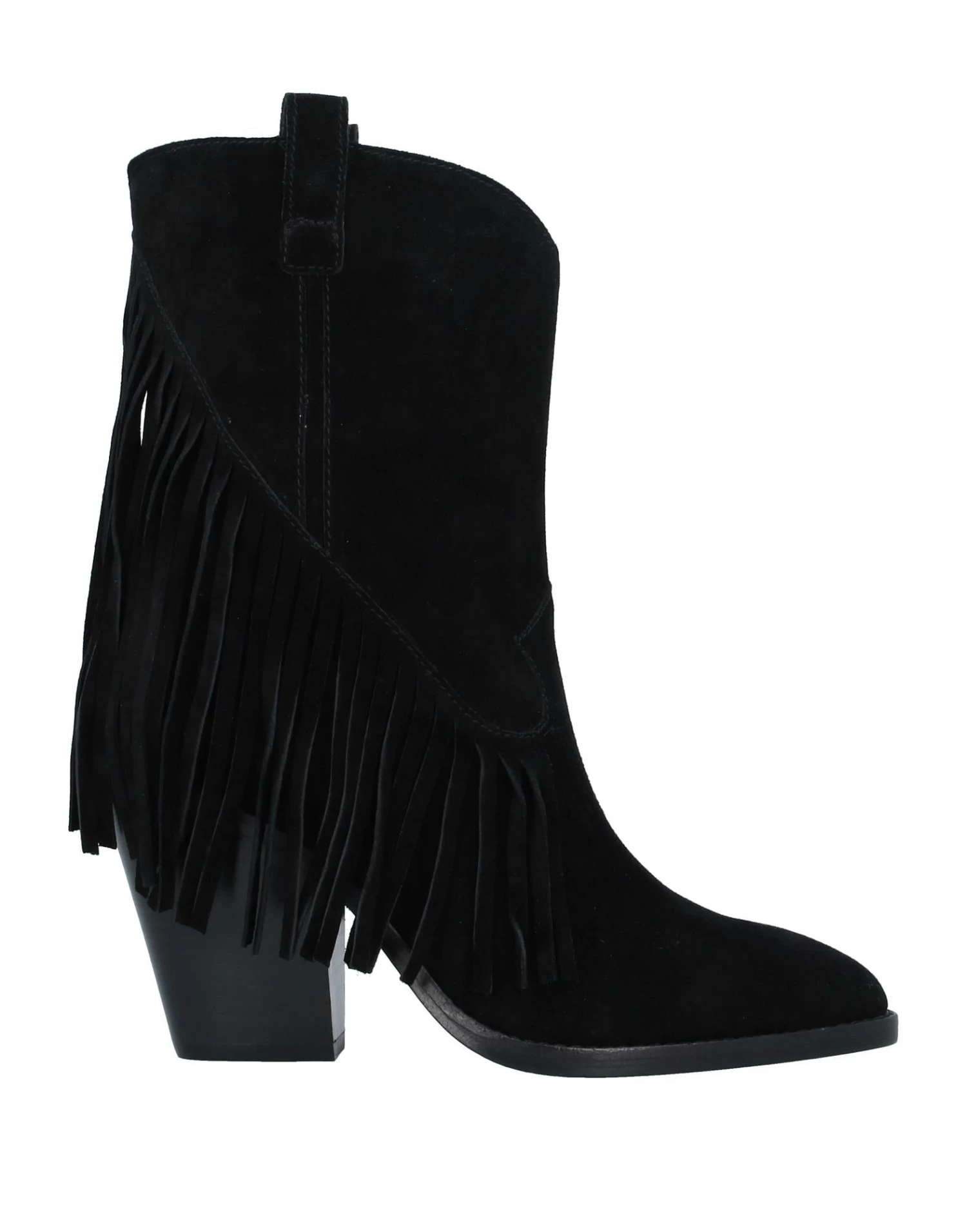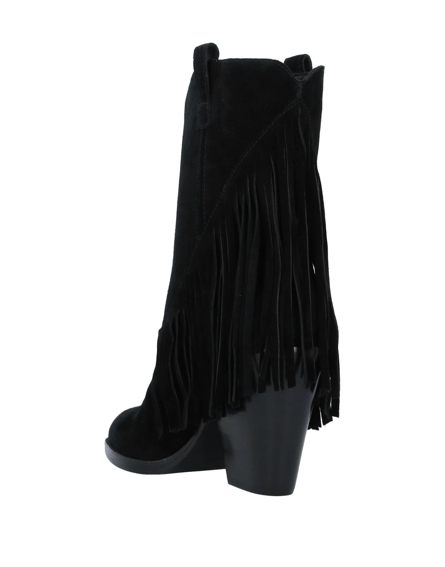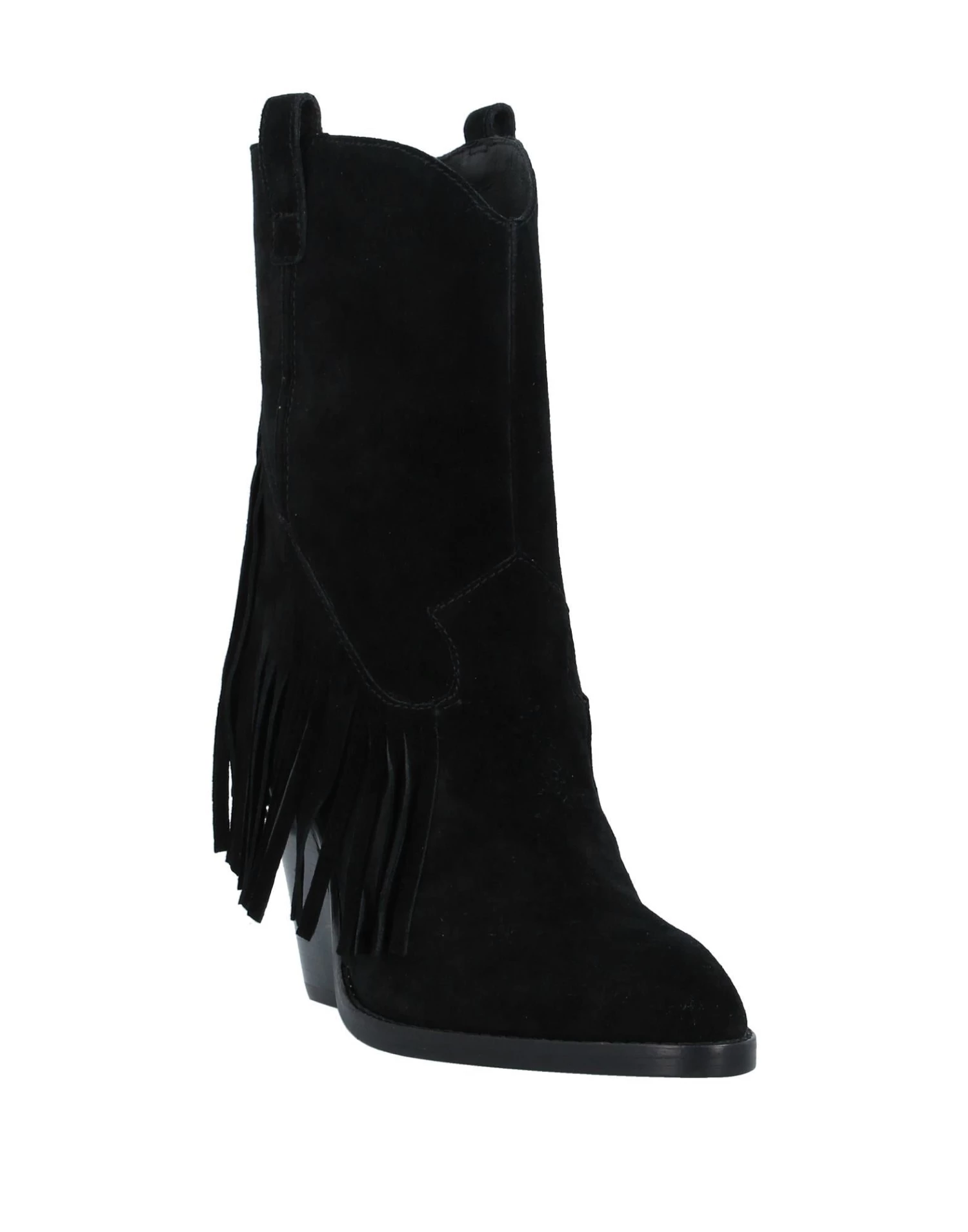 suede effect, fringed trims, solid color, narrow toeline, cuban heel, leather lining, leather sole, contains non-textile parts of animal origin