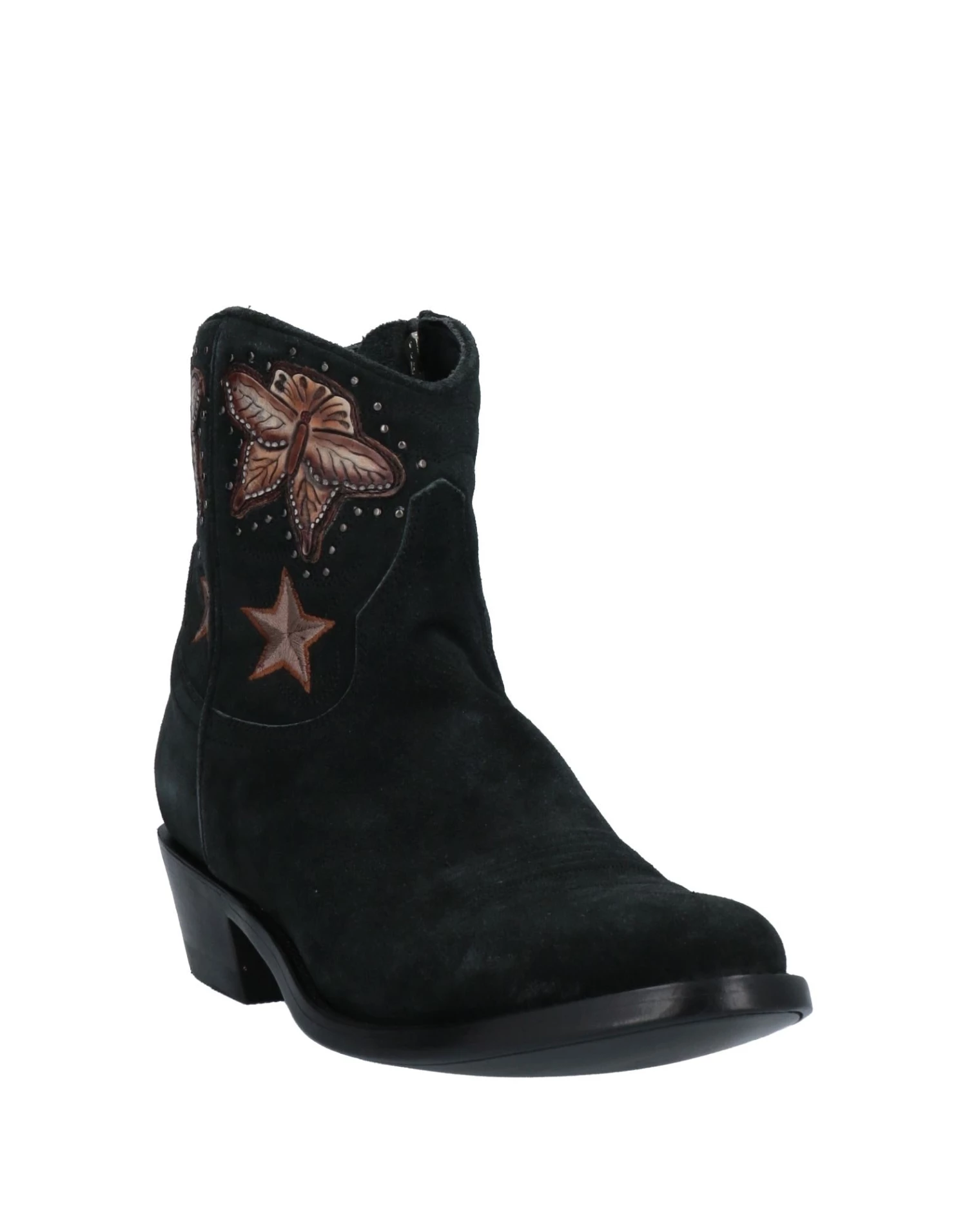 leather, suede effect, embroidered detailing, solid colour with appliqués, leather backing, zipper closure, cuban heel, round toeline, leather sole, contains non-textile parts of animal origin