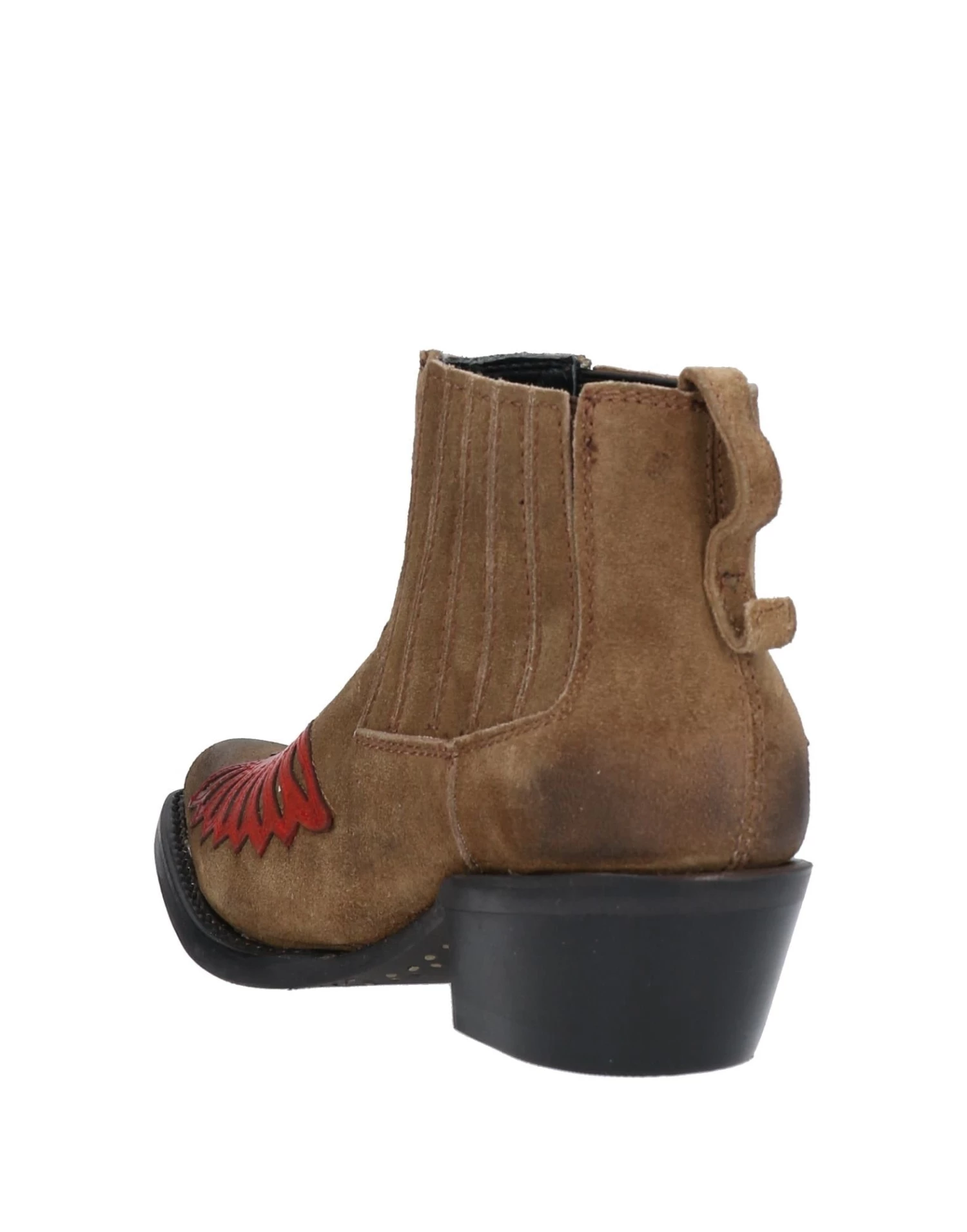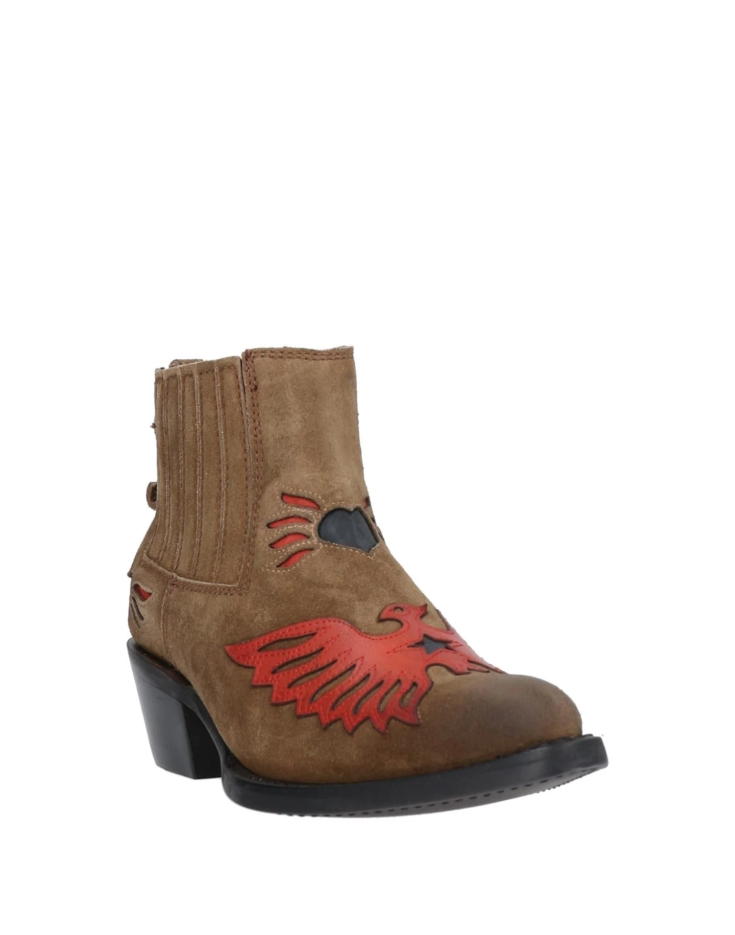 leather, suede effect, contrasting applications, solid color, elasticized gores, narrow toeline, cuban heel, leather lining, rubber cleated sole, contains non-textile parts of animal origin