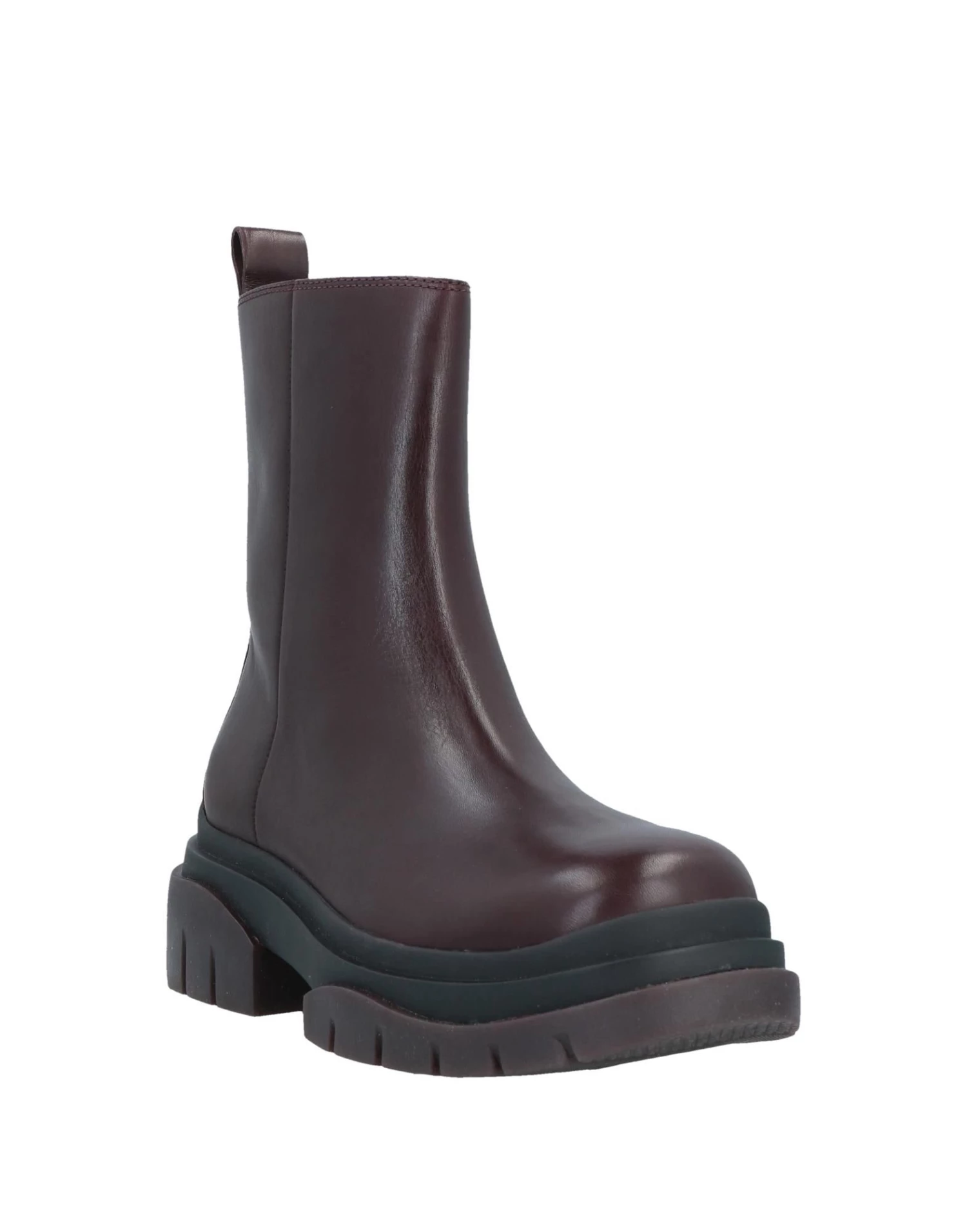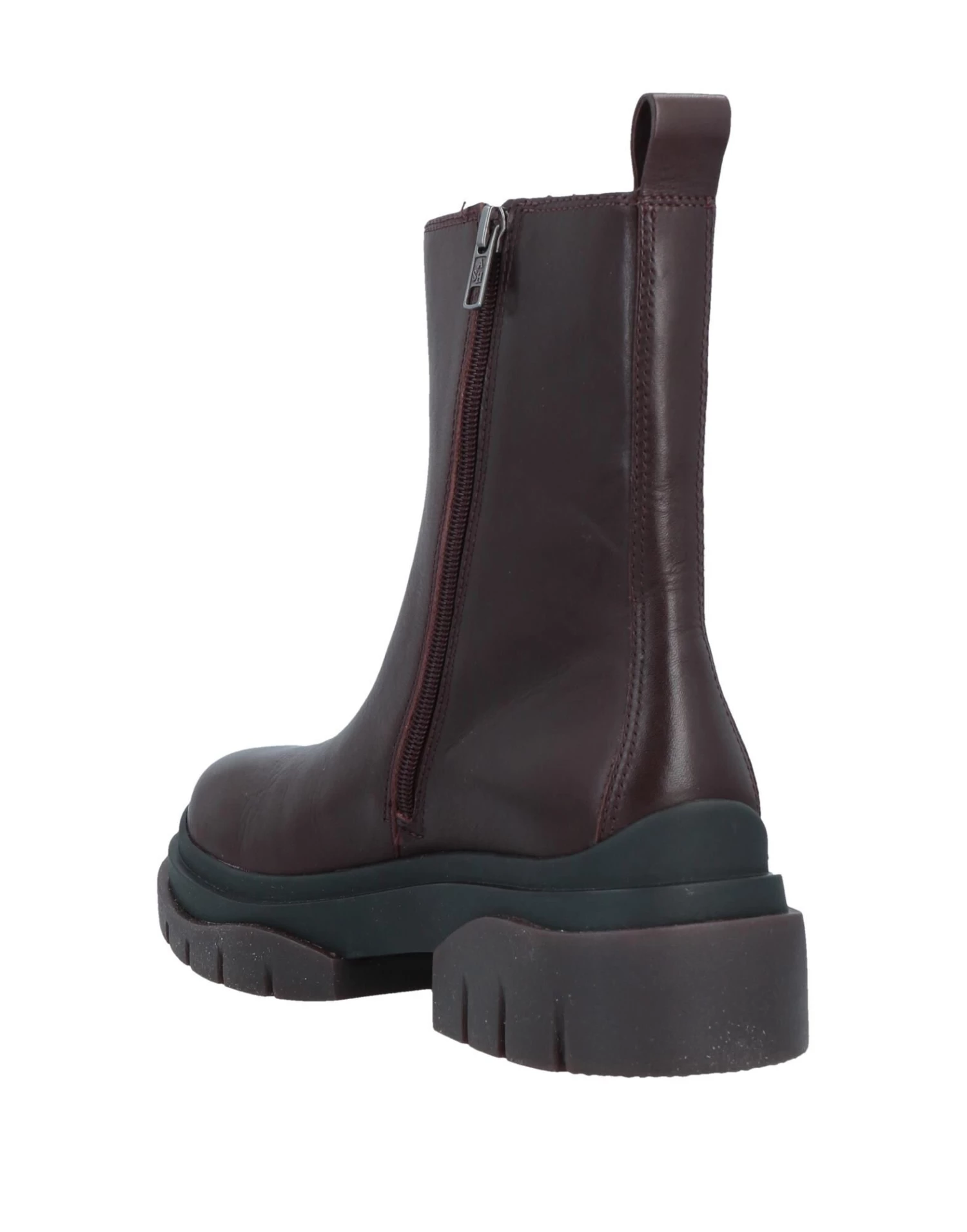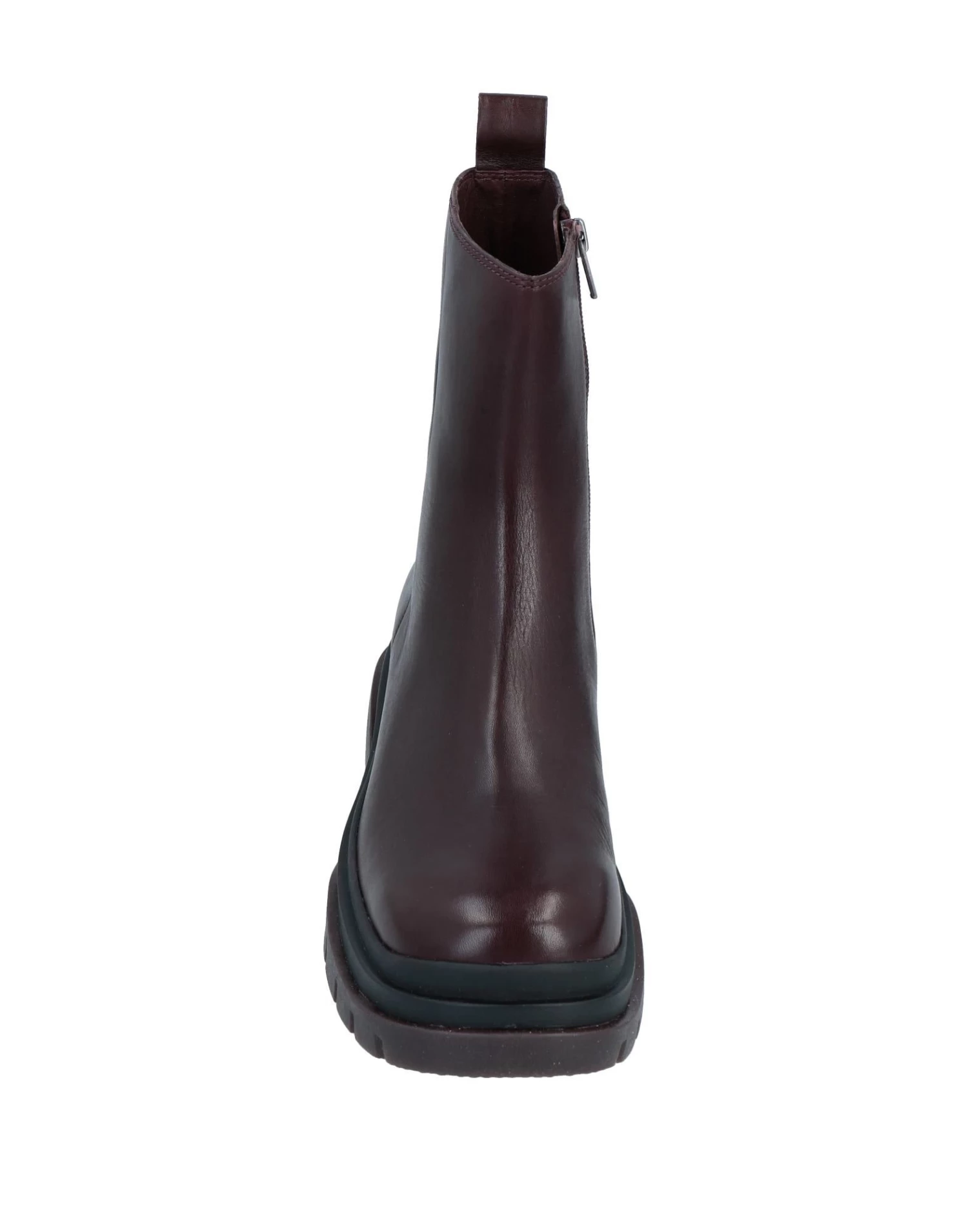 leather, no appliqués, solid color, leather backing, zipper closure, round toeline, square heel, rubber cleated sole, contains non-textile parts of animal origin