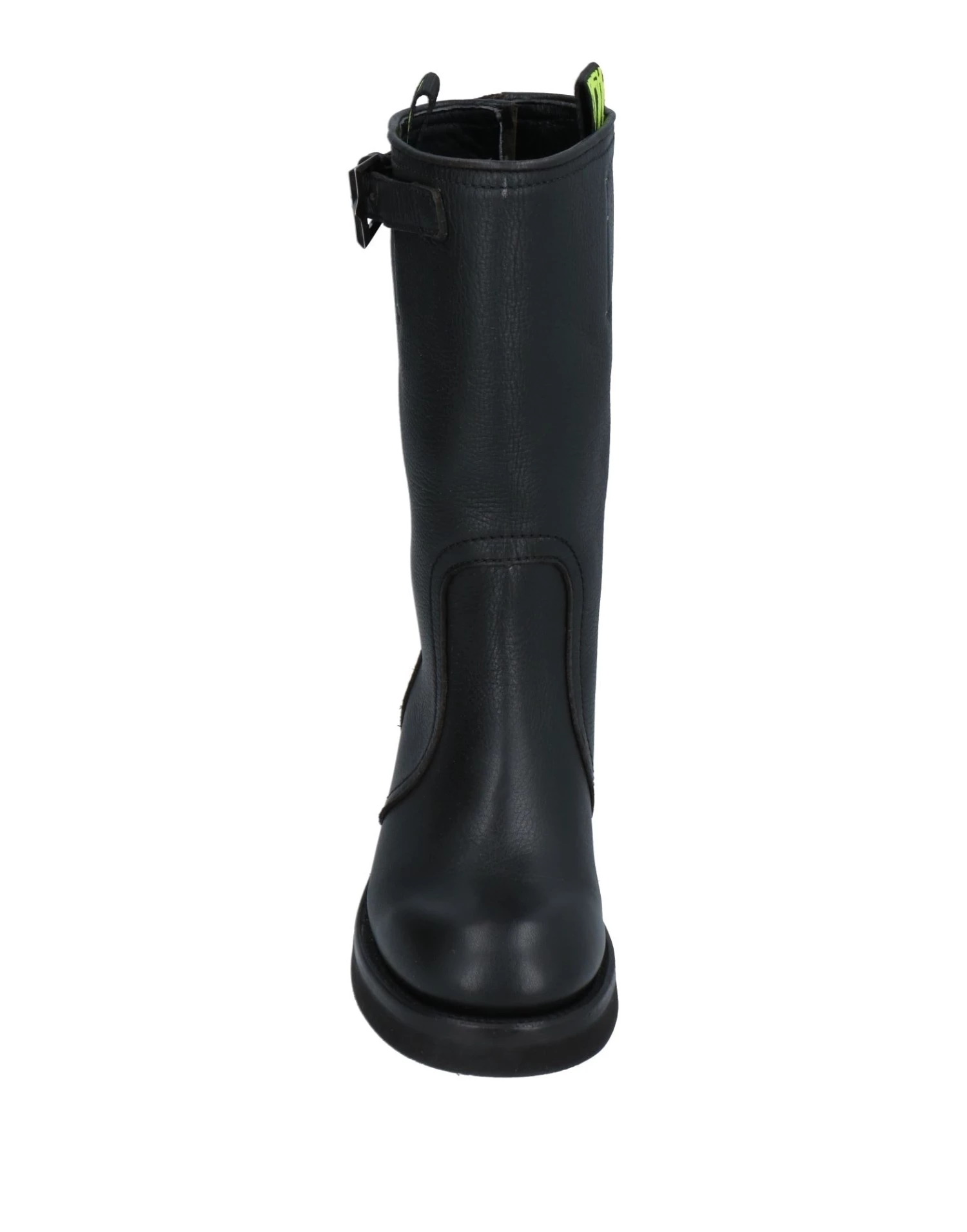 leather, nappa leather, strap detailing, brand logo, solid color, leather backing, square toeline, square heel, rubber cleated sole, contains non-textile parts of animal origin, chunky boots