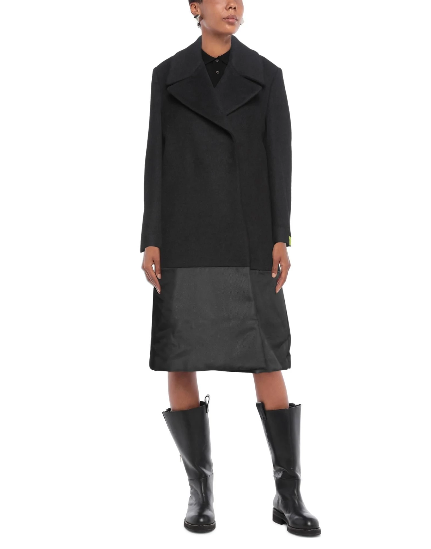 techno fabric, baize, brand logo, solid color, lapel collar, double-breasted, long sleeves, fully lined, multipockets, snap buttons fastening