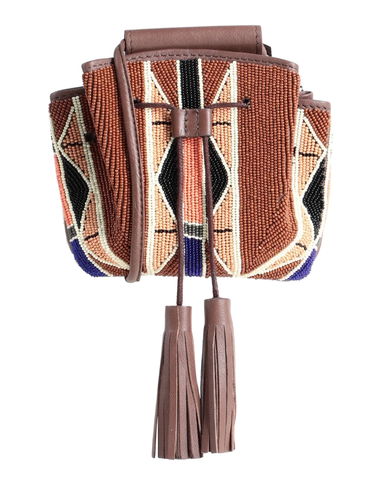 mini, tassels, beads, multicolor pattern, leather lining, daytime, contains non-textile parts of animal origin