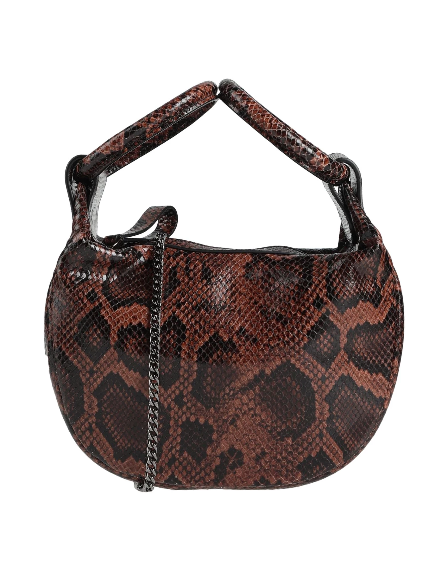medium, leather, snakeskin print, no appliqués, two-tone, fully lined, zipper closure, double handle, detachable shoulder strap, daytime, contains non-textile parts of animal origin
