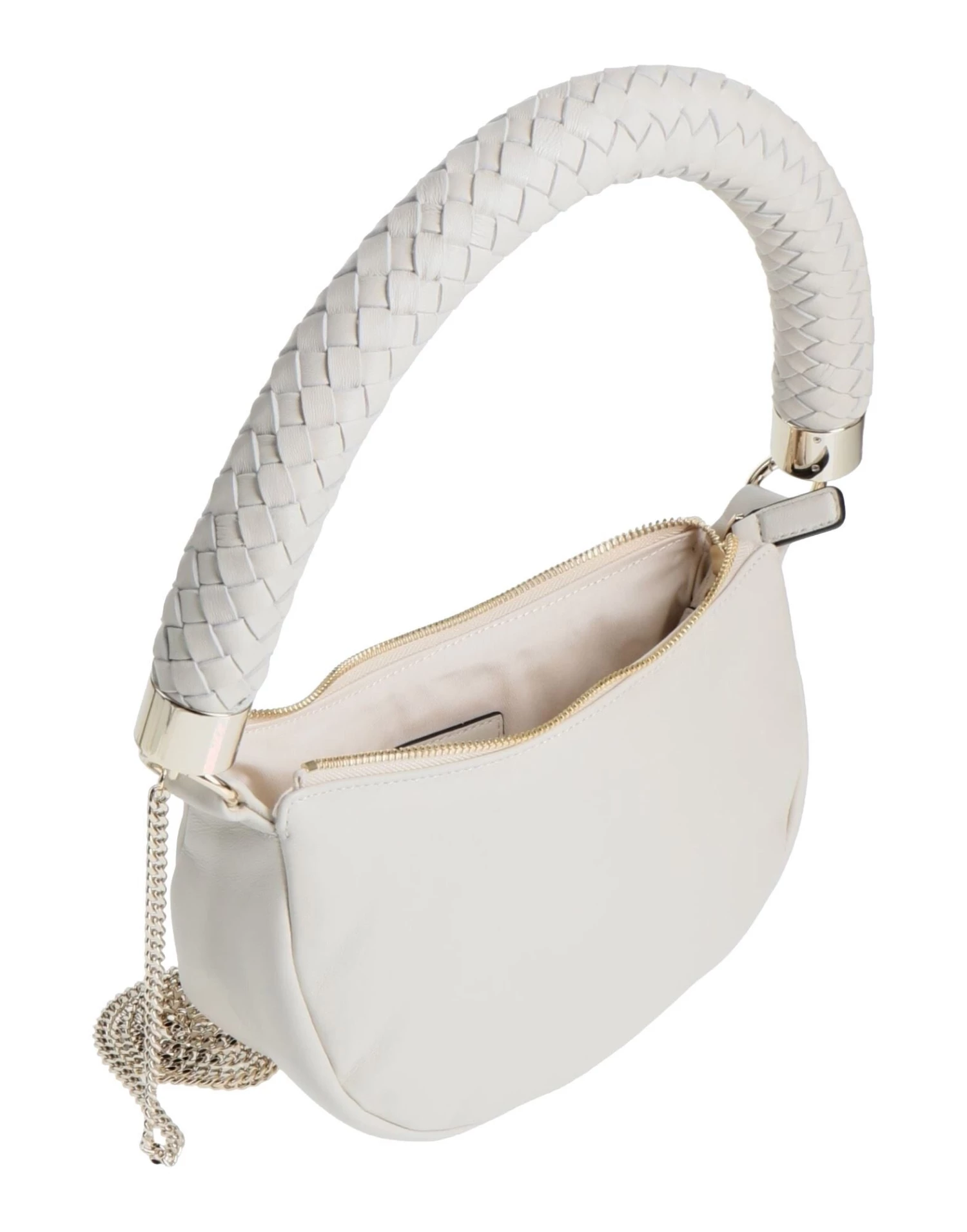 medium, leather, nappa leather, detachable application, brand logo, solid colour with appliqués, fully lined, zipper closure, internal pocket, bag handle, detachable shoulder strap, metallic straps, daytime, contains non-textile parts of animal origin