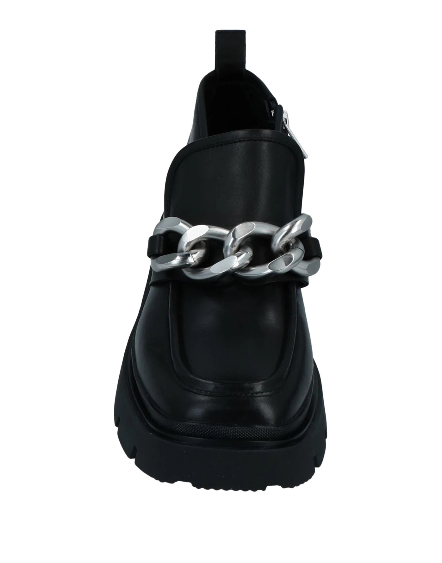 leather, metal applications, solid colour with appliqués, leather lining, zipper closure, square toeline, square heel, rubber heel, rubber cleated sole, contains non-textile parts of animal origin