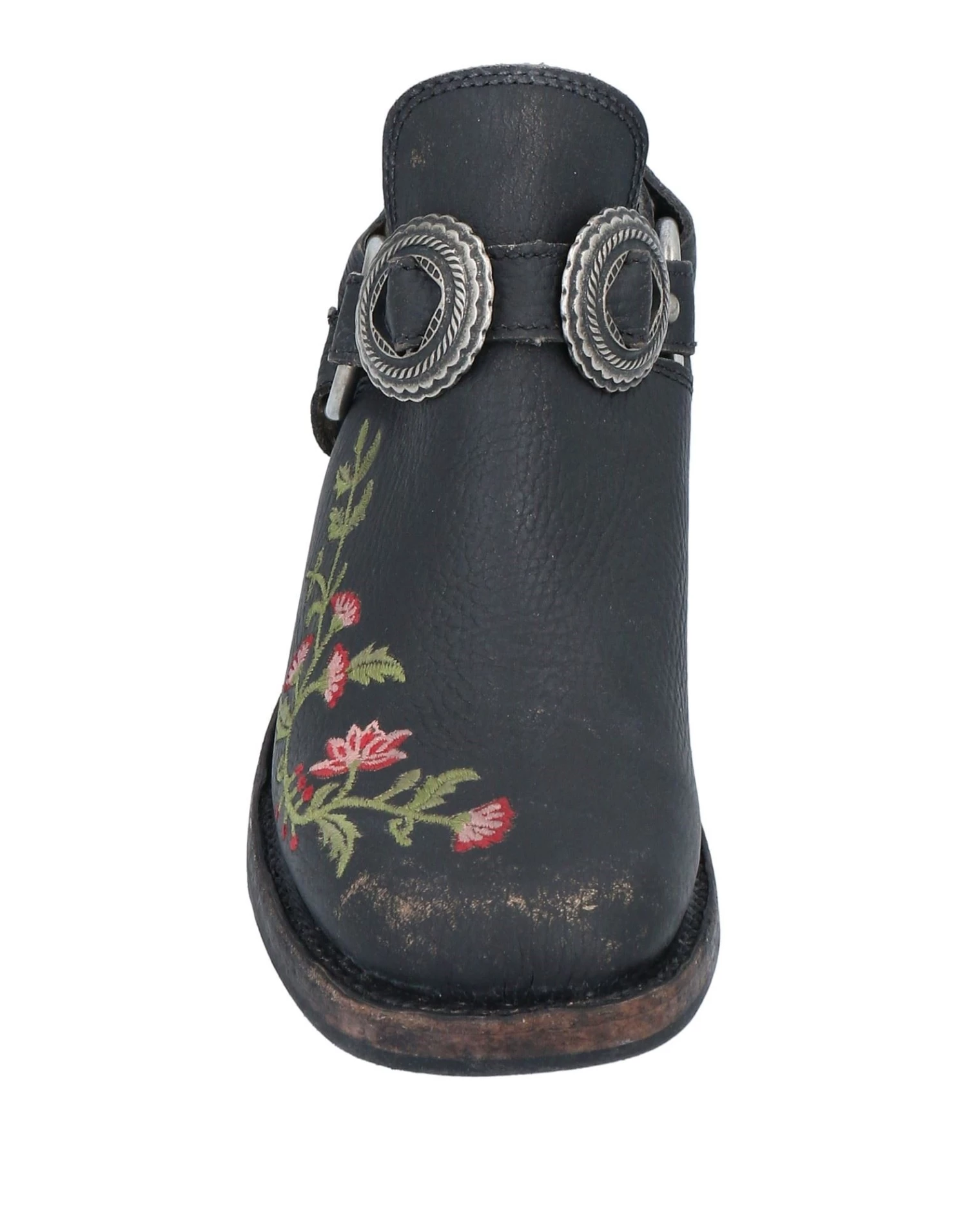 leather, textured leather, embroidered detailing, floral design, worn effect, square toeline, square heel, covered heel, rubber sole, leather lining, contains non-textile parts of animal origin