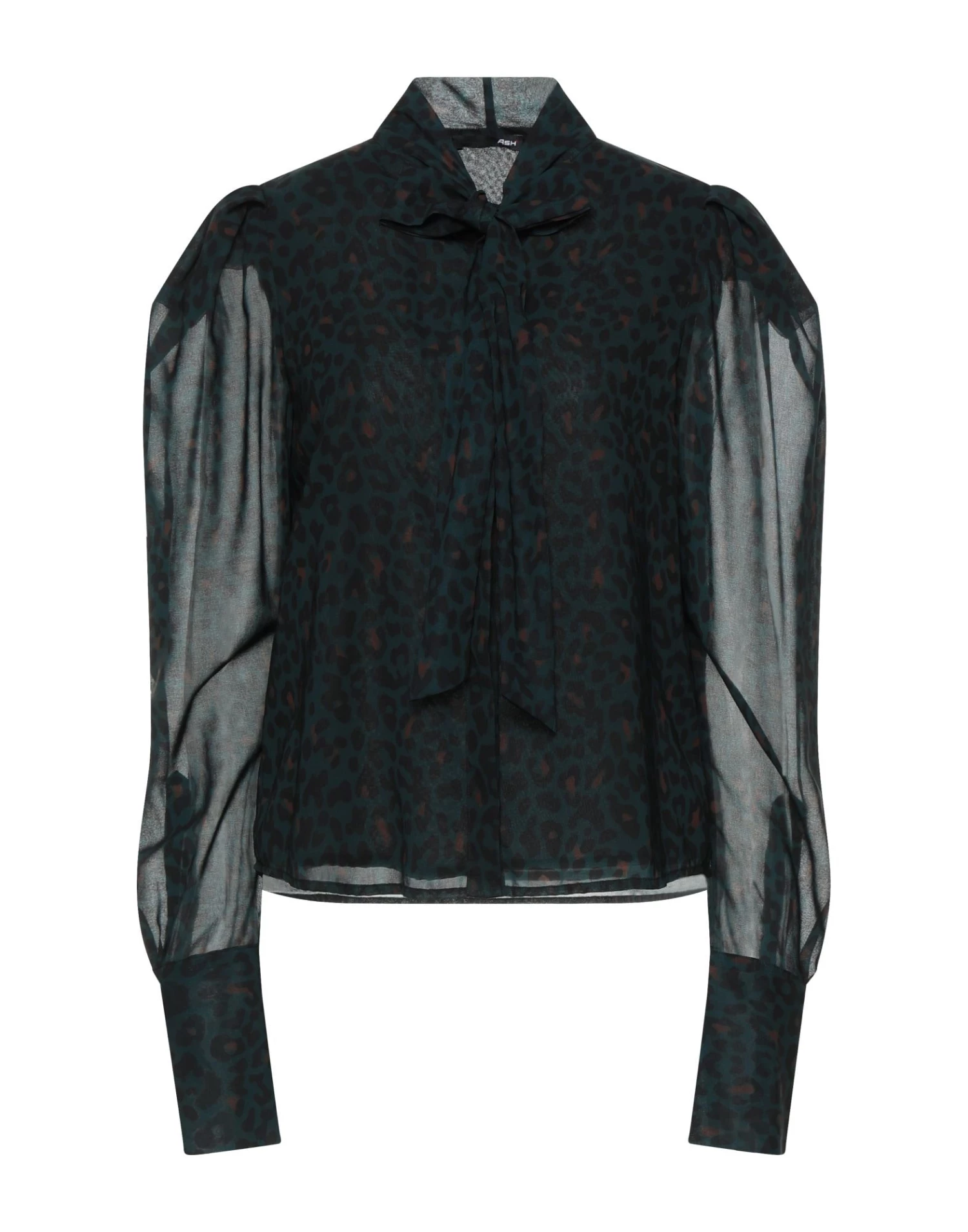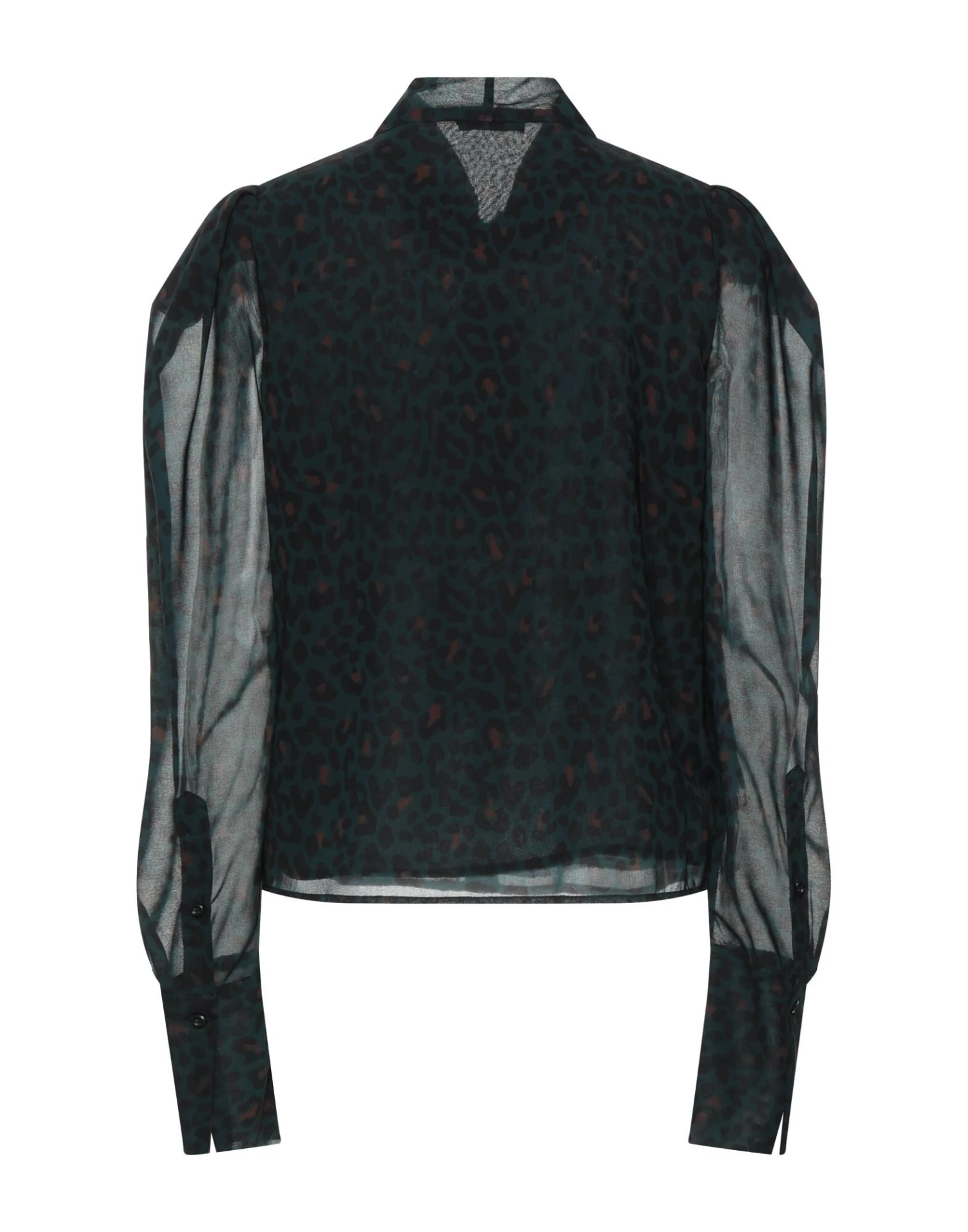 crepe, bow-detailed, leopard-print, bow collar, long sleeves, buttoned cuffs, no pockets, partially lined interior