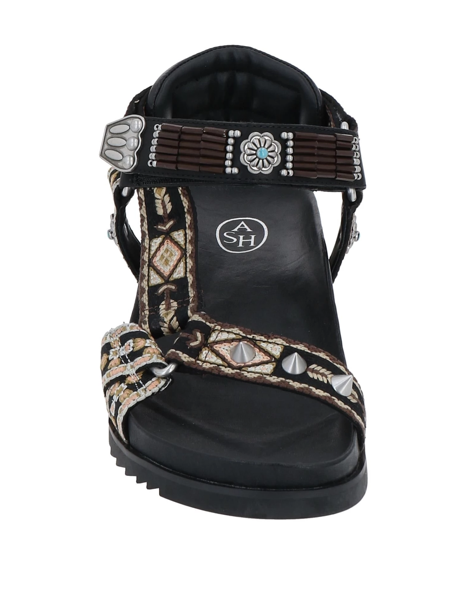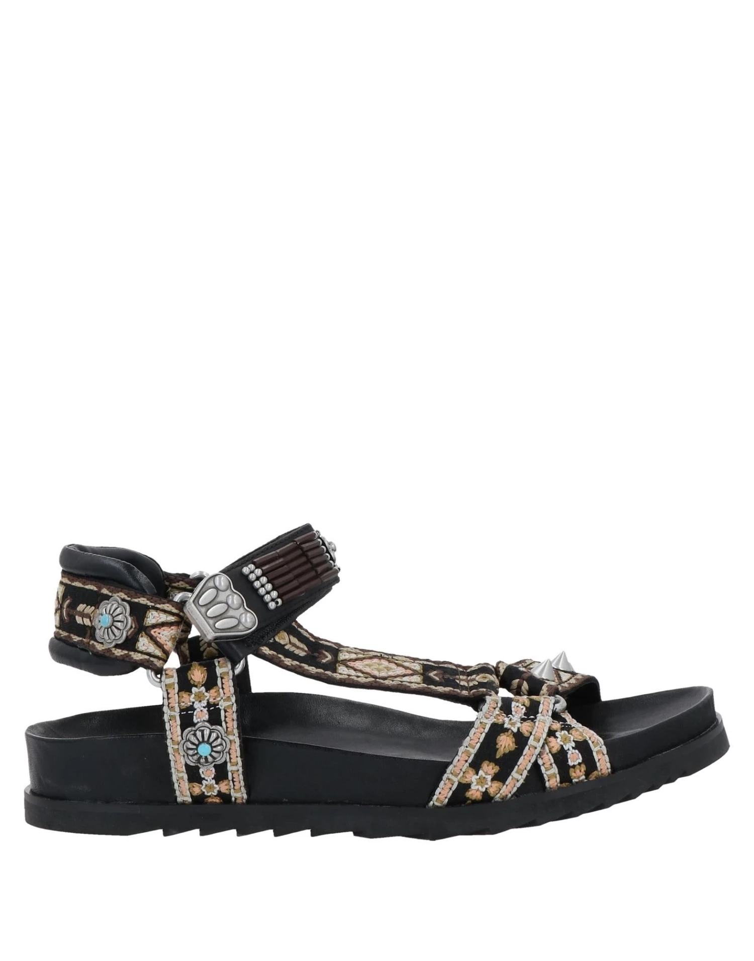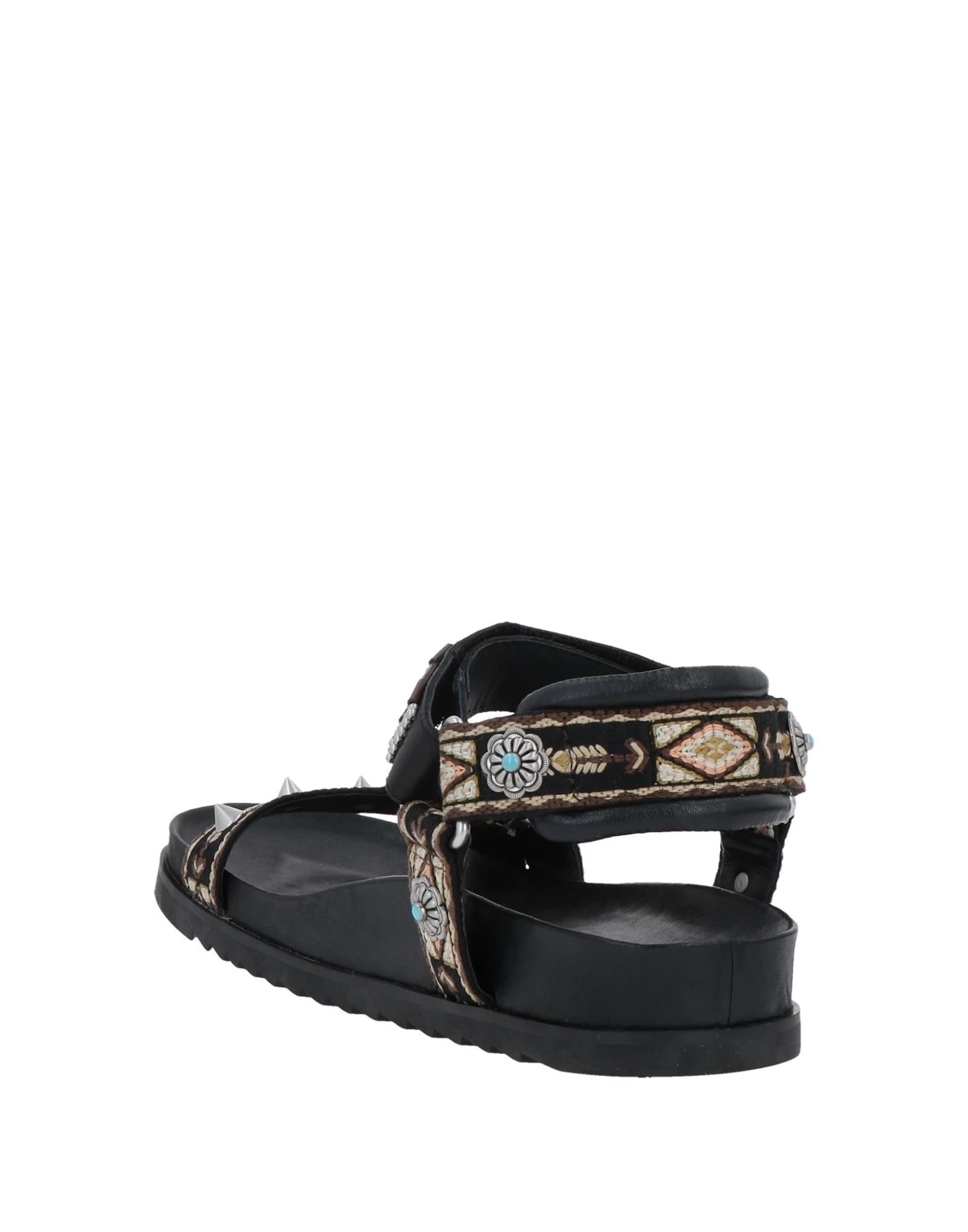 coated fabric, studs, ethnic design, leather lining, velcro closure, round toeline, flat, rubber sole, contains non-textile parts of animal origin