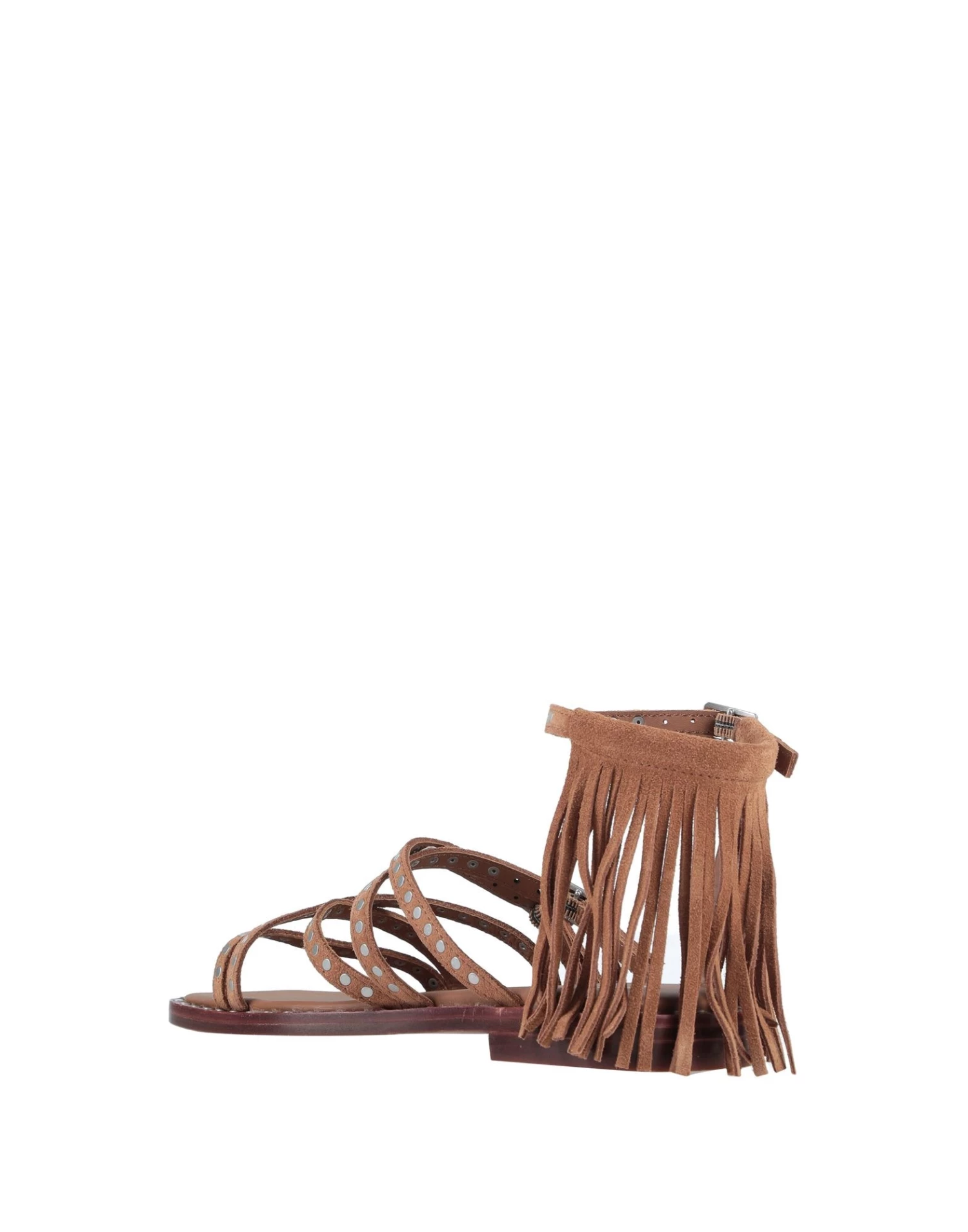 leather, suede effect, studs, fringed, solid colour with appliqués, wrapping straps closure, flat, rubber heel, leather lining, leather/rubber sole, contains non-textile parts of animal origin, square toeline