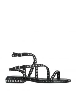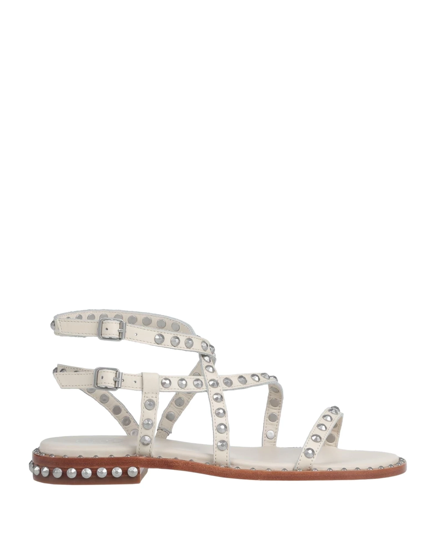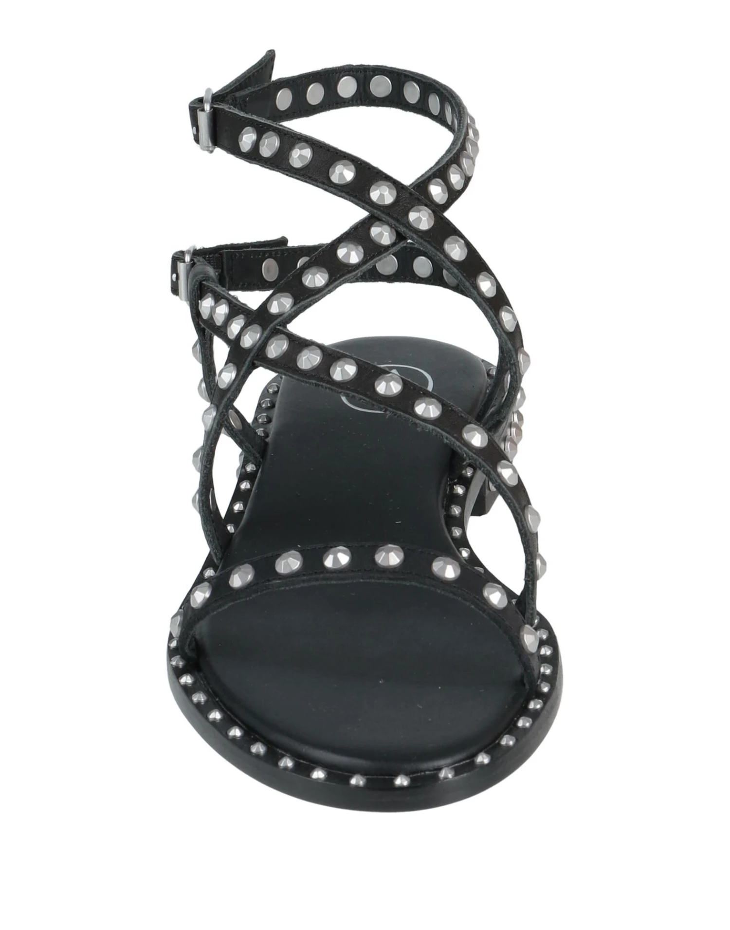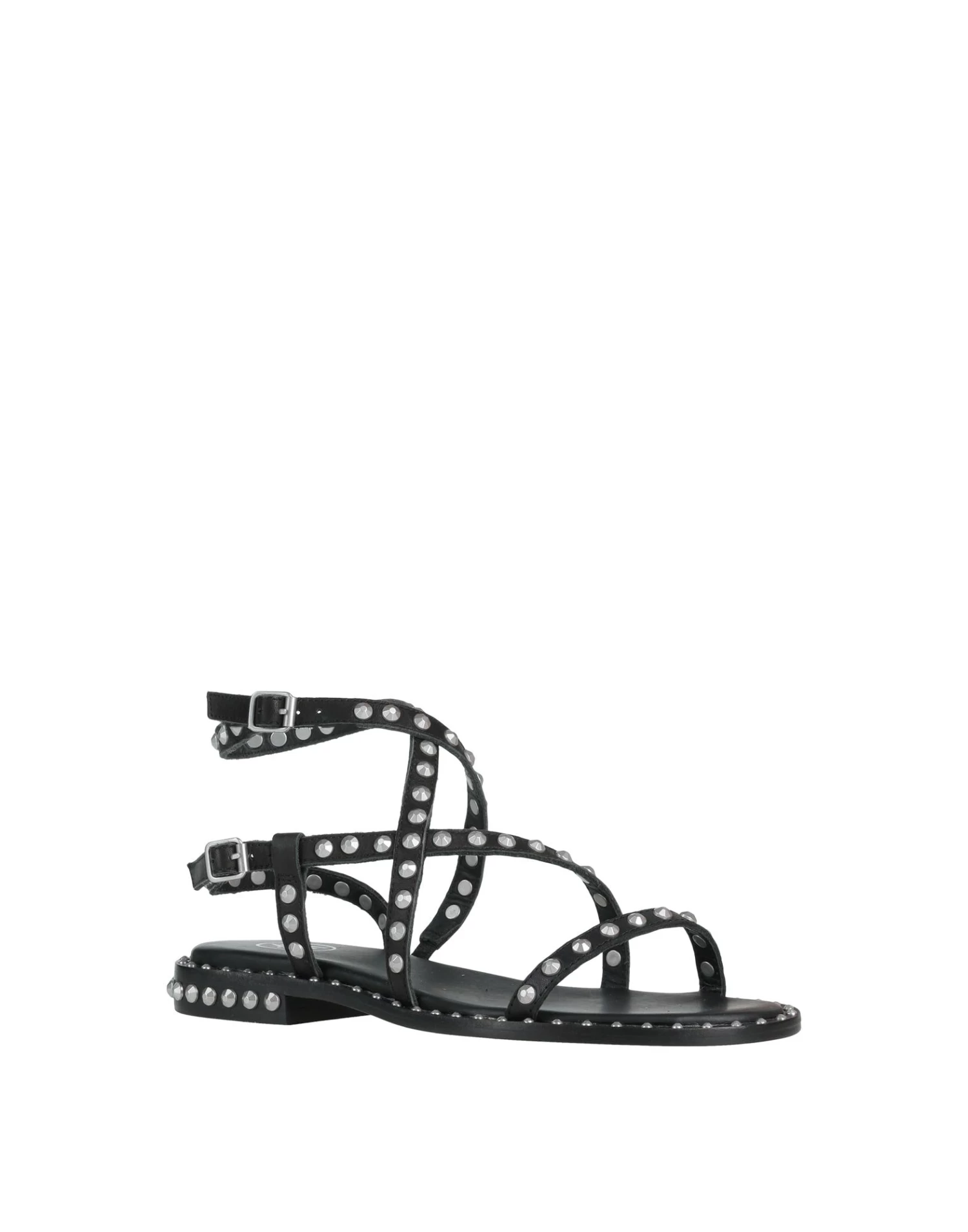 studs, solid colour with appliqués, leather backing, buckling ankle strap closure, round toeline, flat, leather sole, contains non-textile parts of animal origin, gladiator sandals