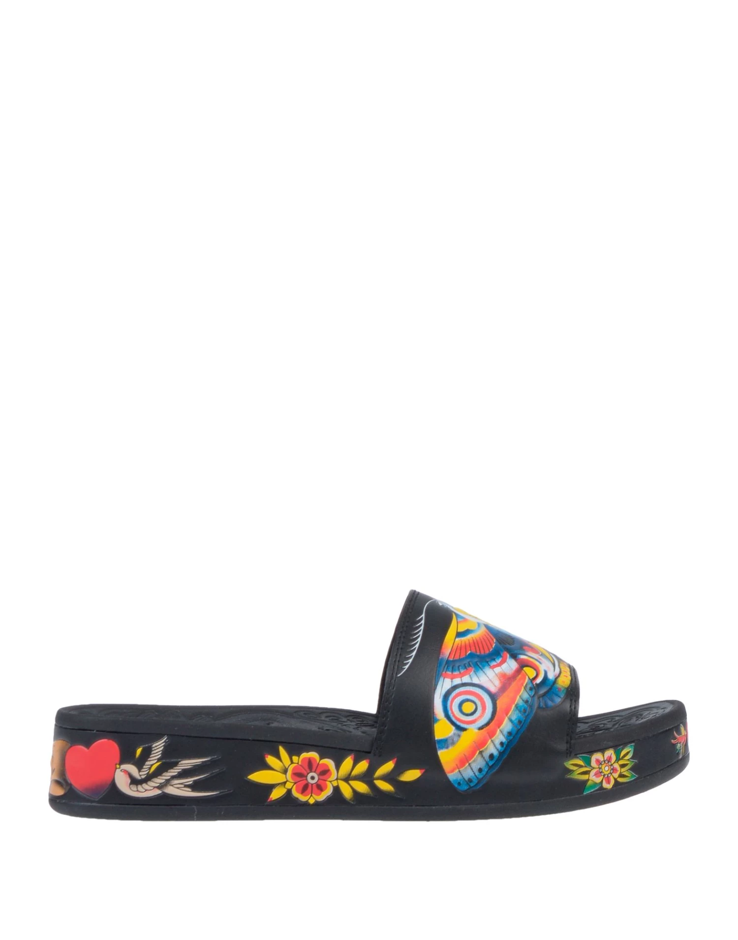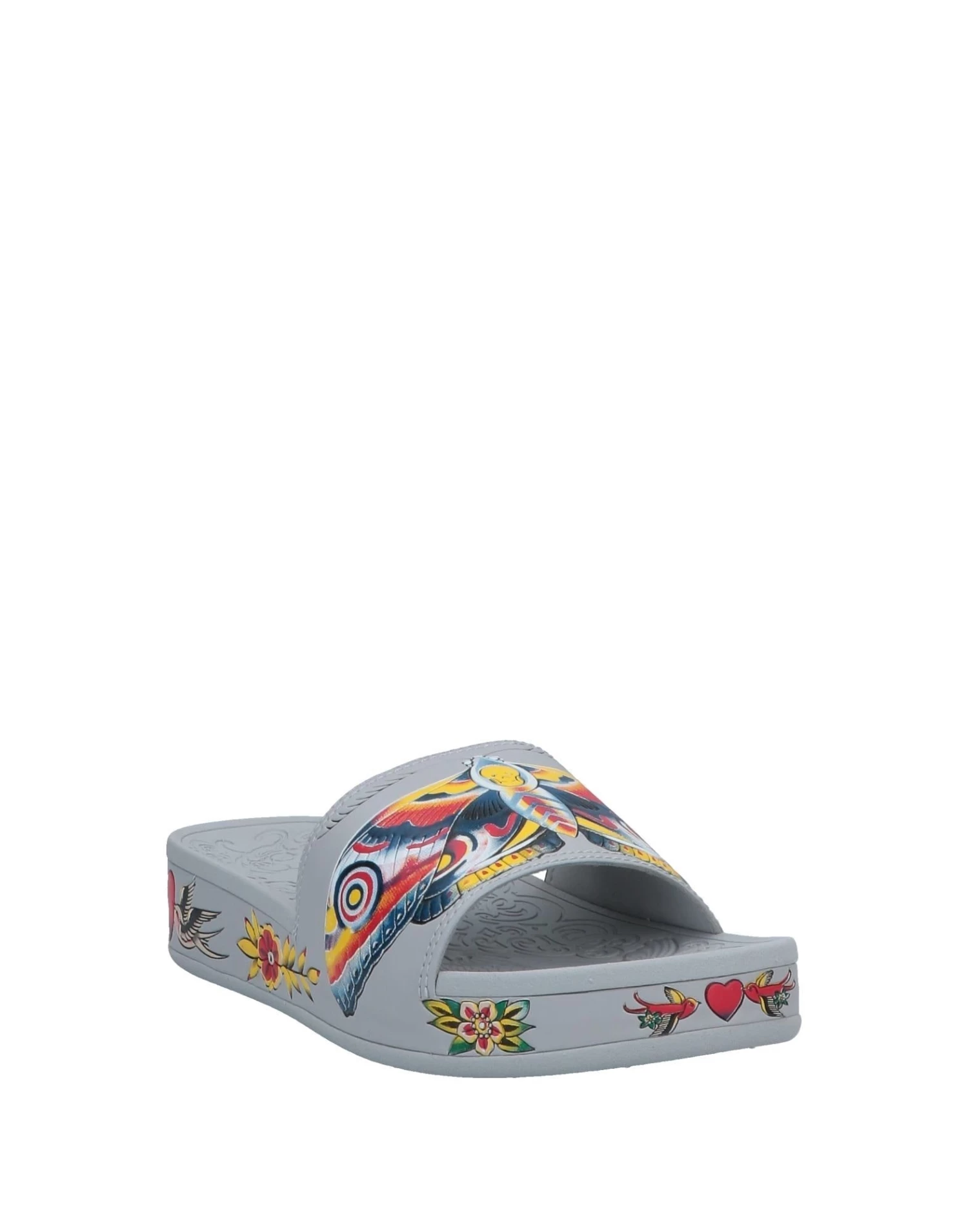 print, multicolor pattern, round toeline, flat, leather lining, rubber cleated sole, coated fabric, contains non-textile parts of animal origin