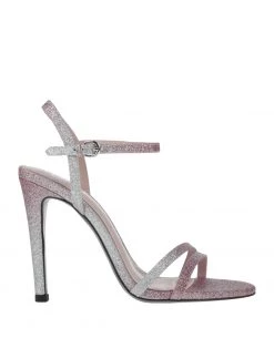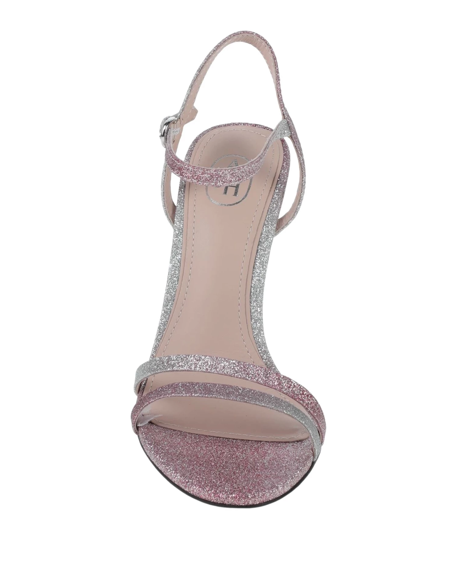 coated fabric, glitter, solid color, buckle fastening, round toeline, stiletto heel, covered heel, leather lining, leather sole, contains non-textile parts of animal origin