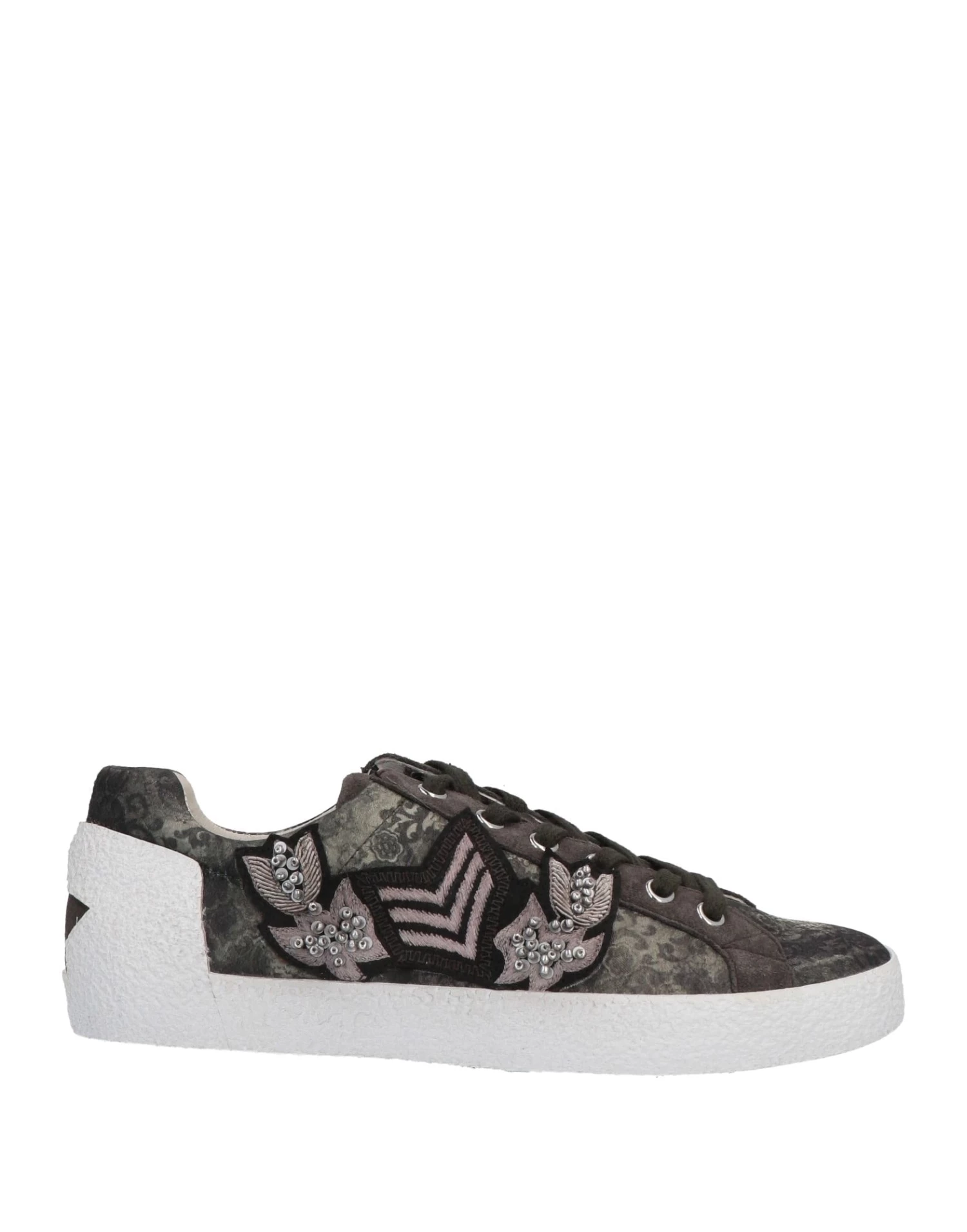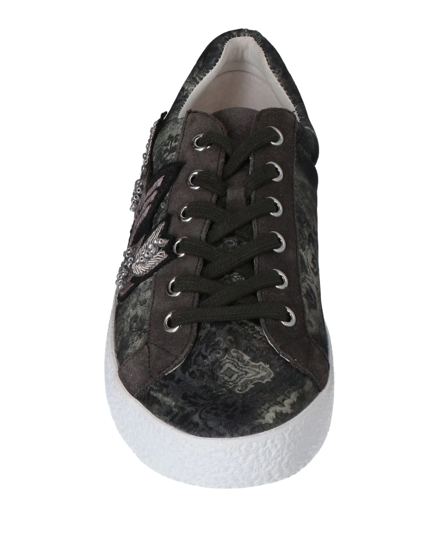 velvet, leather, suede effect, beads, contrasting applications, paisley-print, leather backing, laces, round toeline, flat, rubber cleated sole, contains non-textile parts of animal origin