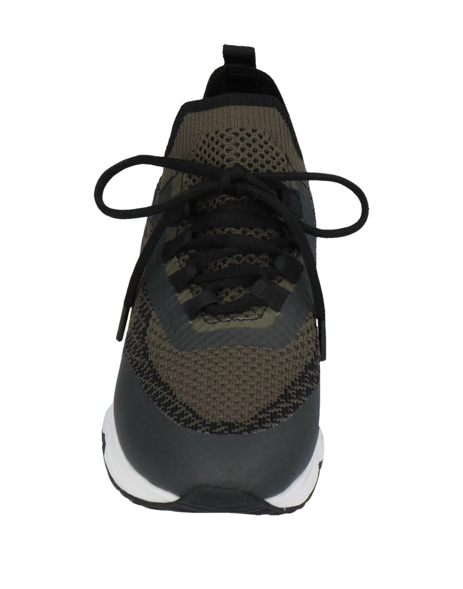 knitted, brand logo, two-tone, fabric inner, laces, round toeline, flat, rubber cleated sole