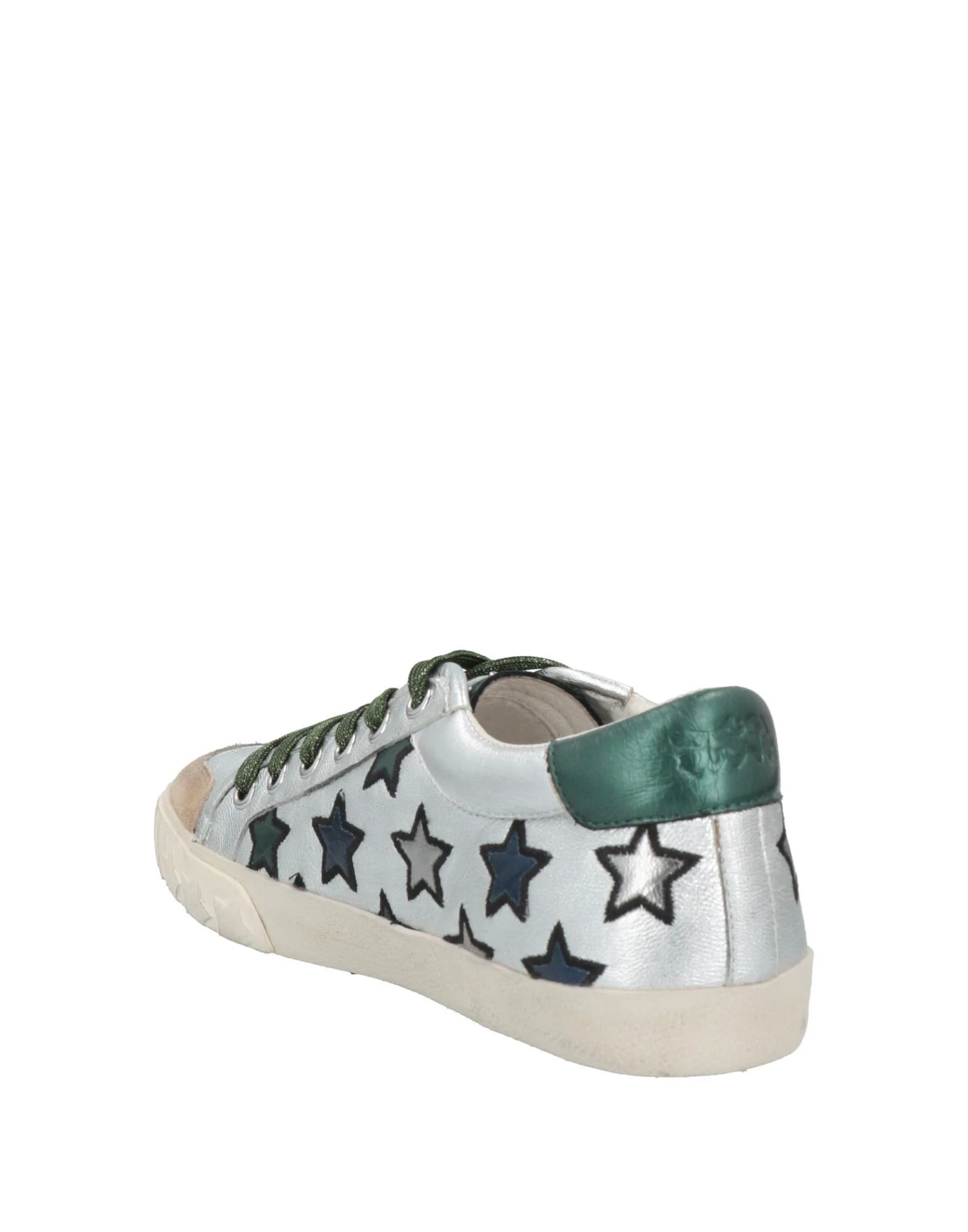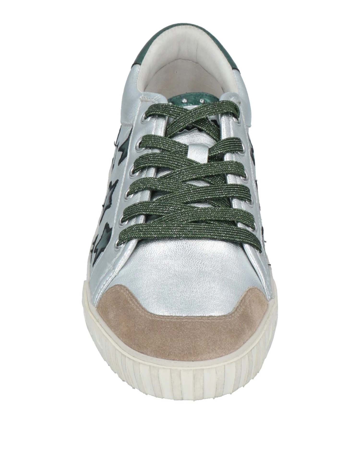 leather, suede effect, laminated effect, brand logo, multicolor pattern, leather backing, laces, round toeline, flat, rubber sole, contains non-textile parts of animal origin
