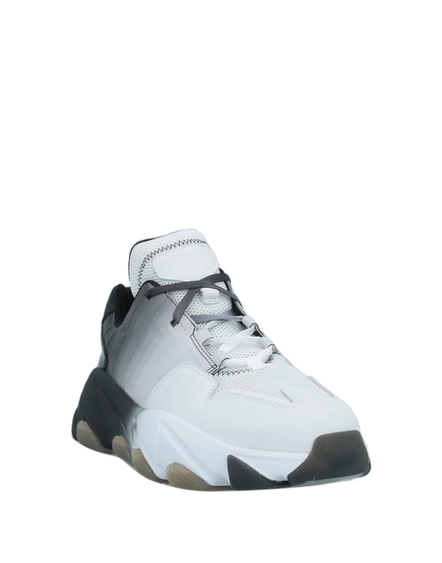 techno fabric, leather, logo, varnished effect, shaded effect, two-tone, laces, round toeline, flat, technical fabric inner, rubber sole, contains non-textile parts of animal origin