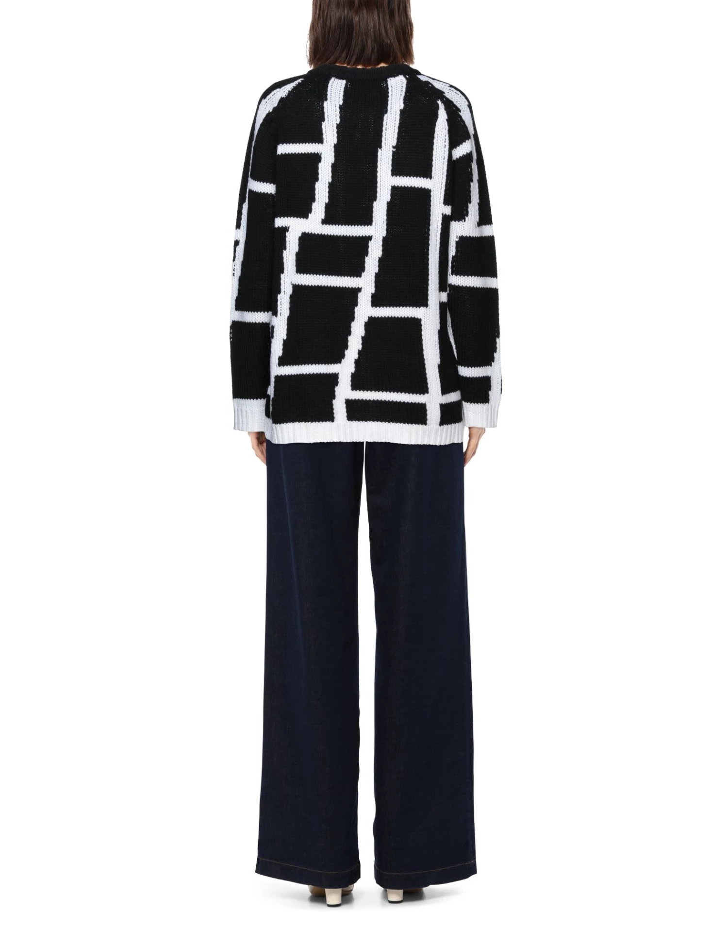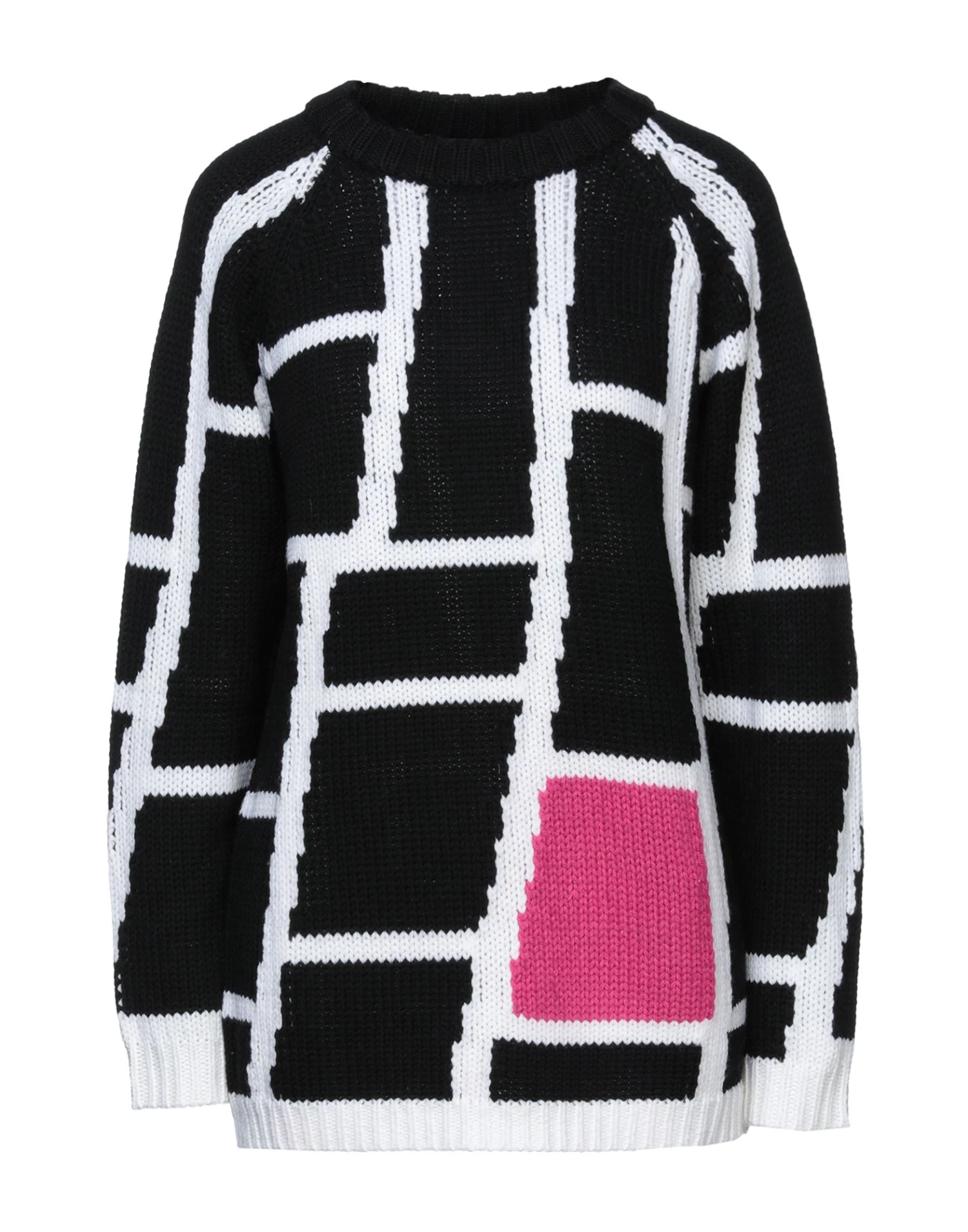 knitted, medium-weight knit, no appliqués, multicolor pattern, round collar, long sleeves, no pockets