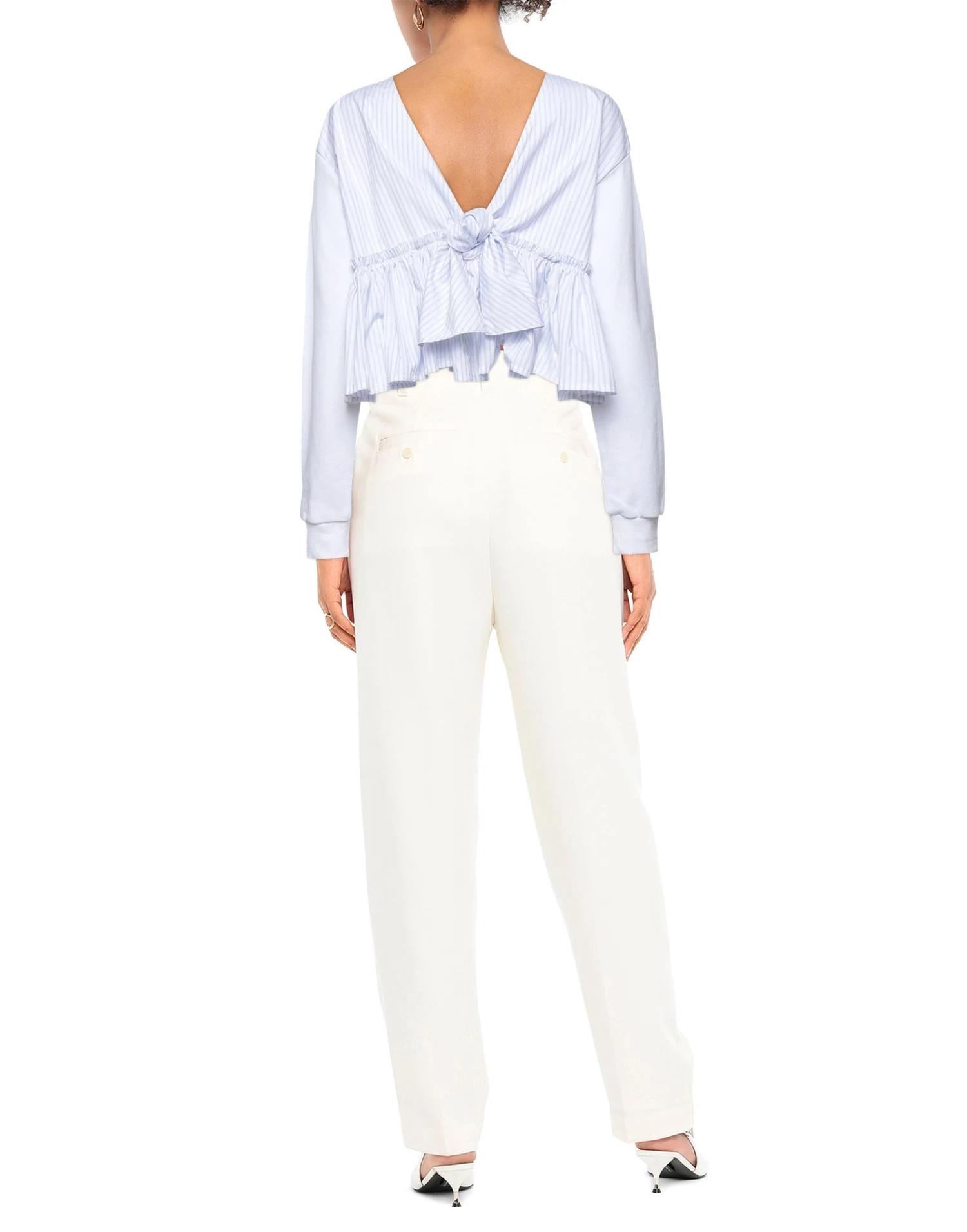sweatshirt fleece, plain weave, frills, solid color, round collar, long sleeves, french terry lining